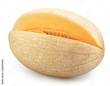 Ripe white oval melon with a cut isolated on white background. File contains clipping path.