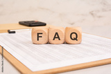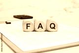Wooden blocks with FAQ on a financial document. Frequently Asked Questions concept.