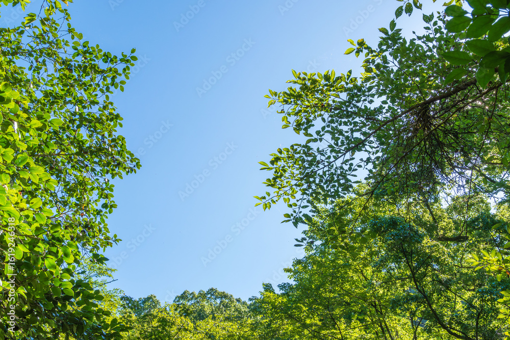 夏の風景 森から見上げた青空と木々10