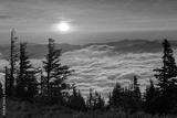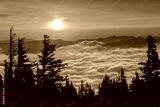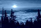 Beautiful sunrise over mountains with storm clouds in background. Masivul Ceahlau, Romania.