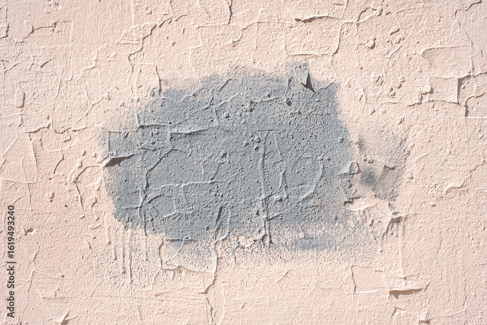 Center gray paint patch with visible cracks on wall texture