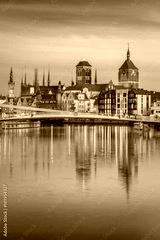 Old town in Gdansk and catwalk over Motlawa river at sunset, Poland