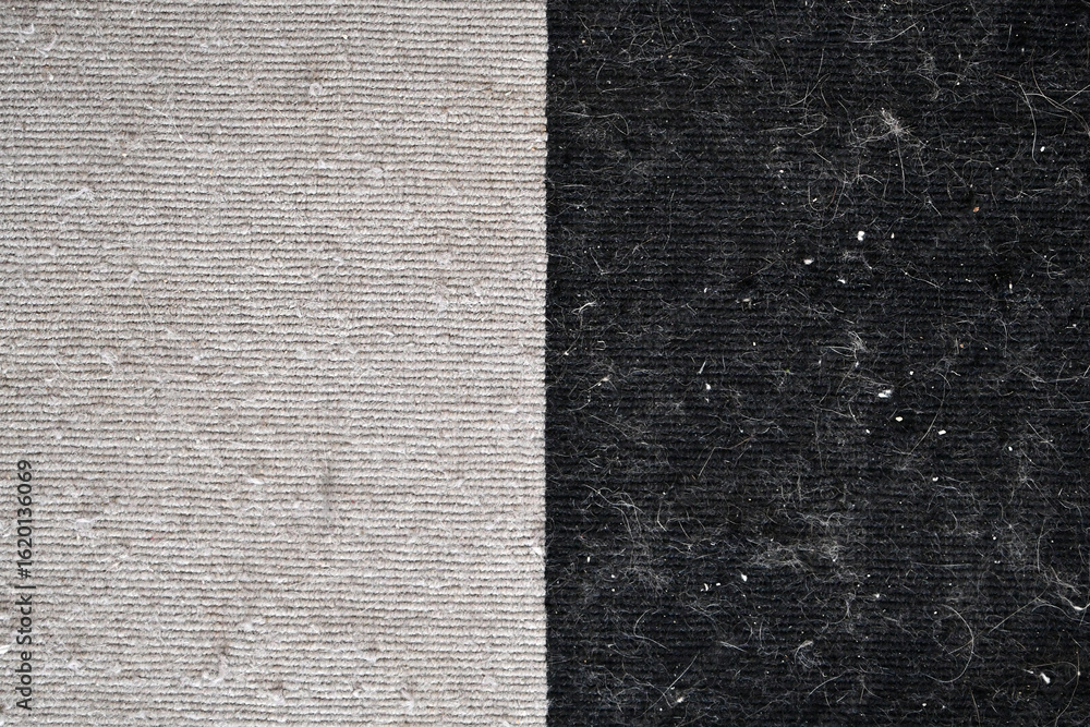 Cat hair on rug or carpet. Plenty dust on rug. The concept of how to remove cat hair on the carpet.