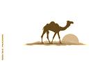 Isolated camel silhouette against flat desert terrain graphic on a white background for logo designs desert festival merchandise and Middle Eastern travel campaigns