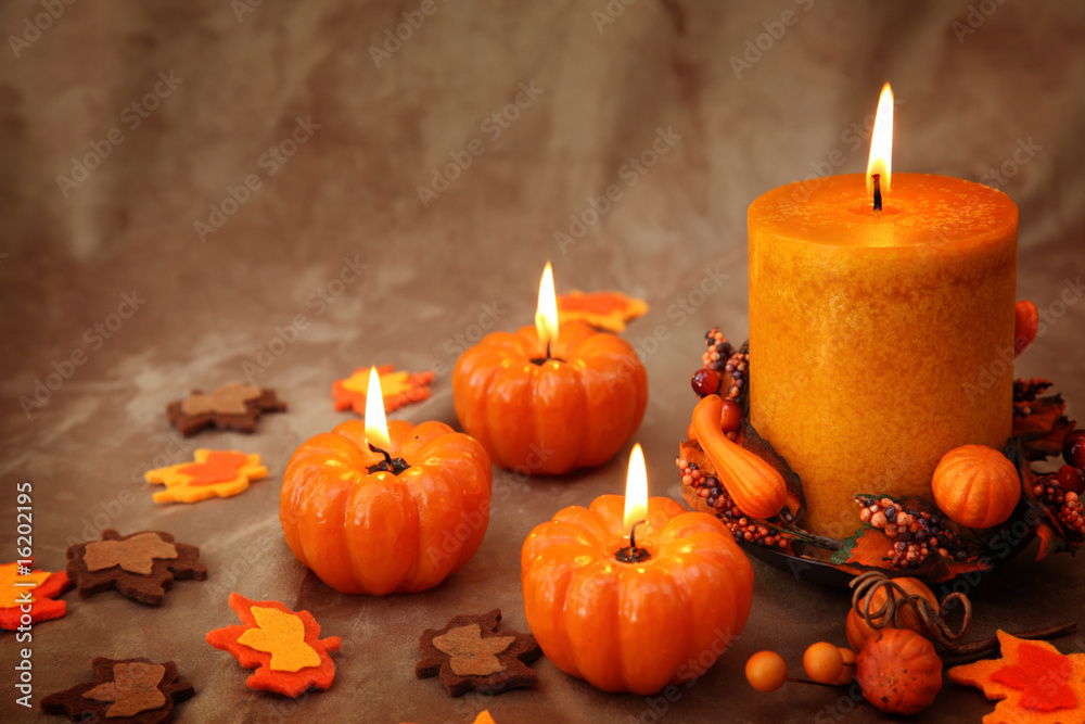 Autumn candles on a brown backdrop