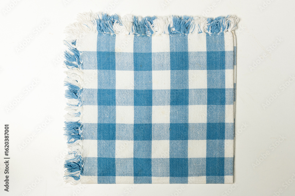 Blue and White Checkered Cotton Napkin with Fringe