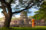 Monk Walking Through Temple, Angkor Wat, Cambodia