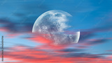 Full moon rising over clouds at sunset