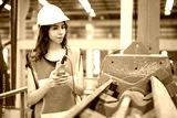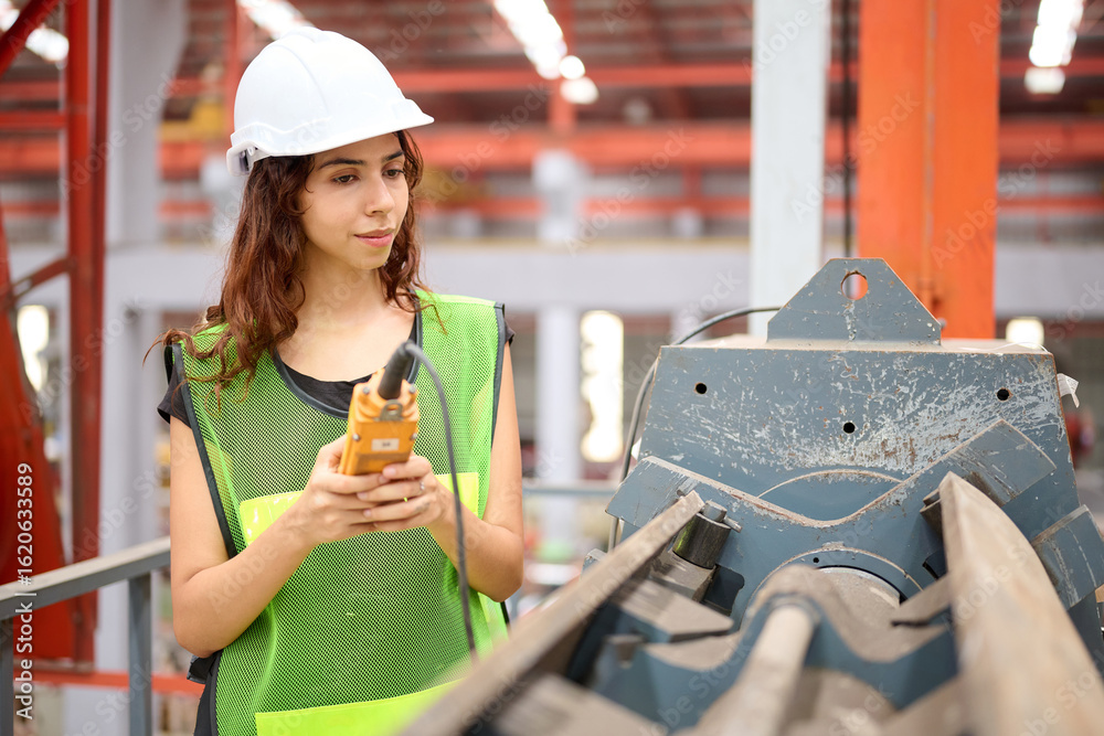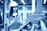 Engineer or worker operating remote switch to control machine in the factory