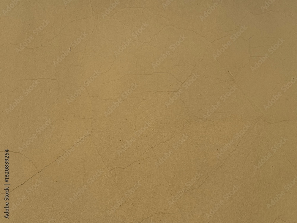 Dark yellow wall texture with small cracks and weathered paint. Close-up of an aged building surface, theme and concept for architectural, urban, and design backgrounds