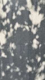 Vertical image of a white wall background with grungy texture and leaf shadow overlay outdoor at daytime during summer on the streets of Kawagoe in Japan with space for text.
