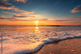 Sea wave close up, low angle view, sunrsie shot