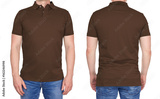 T-shirt design - young man in blank brown polo shirt from front and rear isolated