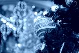 Christmas tree with lights in the background, fresh pine and snowy backdrop, winter forest and festive sparkle.