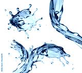 3d render, digital illustration, blue water wave, jets, liquid splash isolated on white