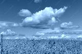 A field of oats under a blue sky with clouds ,pole owsa pod błękitnym niebem z pięknymi chmurami