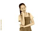 Asian girl using wireless headphones enjoy dancing with music isolated on white studio background.