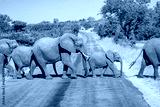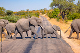 A herd of elephants crosses the asphalt road - Kruger National Park - South Africa.