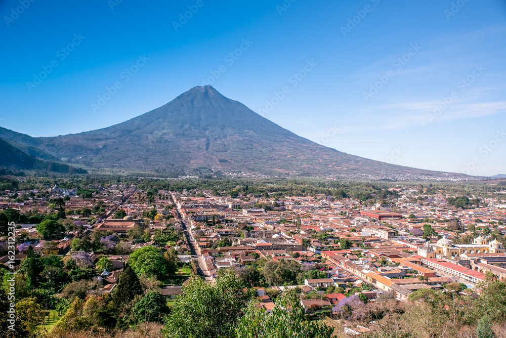 Cerro de la Cruz - Viewpoint from hill to old historic city Antigua and volcano in the mayan highlands in Guatemala
