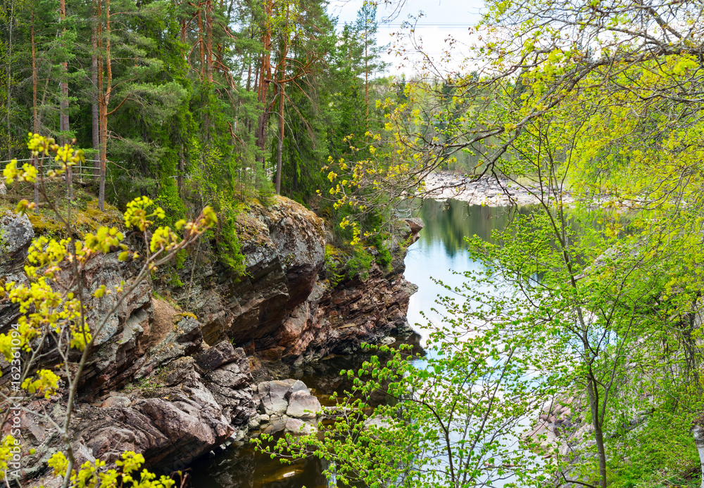 Vuoksa river and rocky canyon view in Imatra, Finland