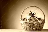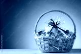 gift basket on blue background