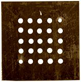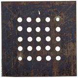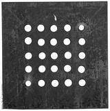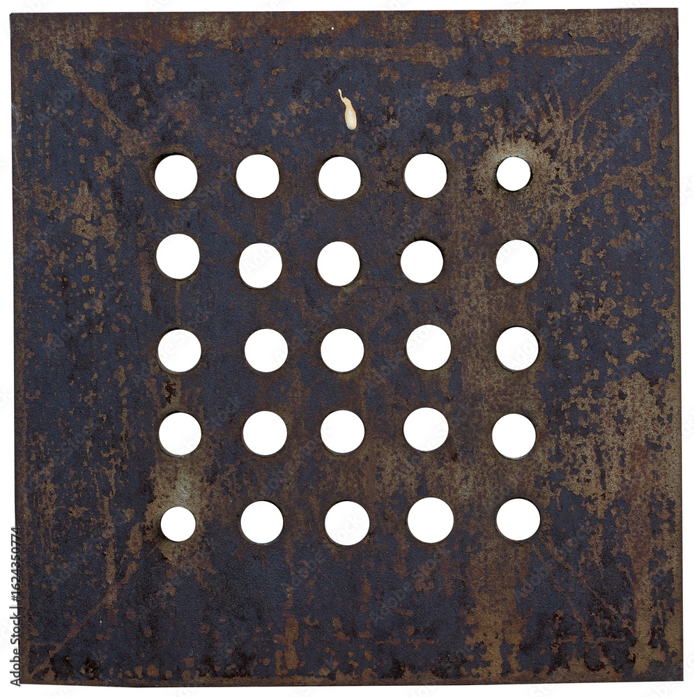 Rusty square metal ventilation grille with round holes transparent background PNG
