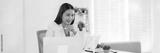 Asian adult businesswoman using tablet for online work professional digital tasks from bright modern office space efficiently managing virtual projects