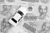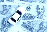 Vietnamese dong currency money bills and toy car. The concept of car ownership