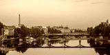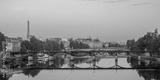 Sunrise over the Seine River in Paris, showcasing bridges and the Eiffel Tower