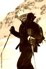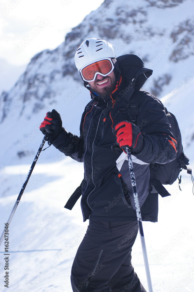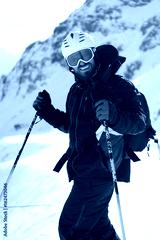 Skiing: male skier in powder snow. Italian Alps, Europe.