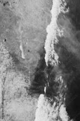 Vertical Horizon Seascape dark ocean background wave splash rock. Tropical sea beach in summer seaside outdoor. Vertical Water Surface blue Turquoise ocean sea wave pattern splashing deep blue sea