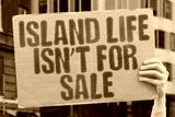 Island Life Isn’t for Sale" protests against luxury zoning.