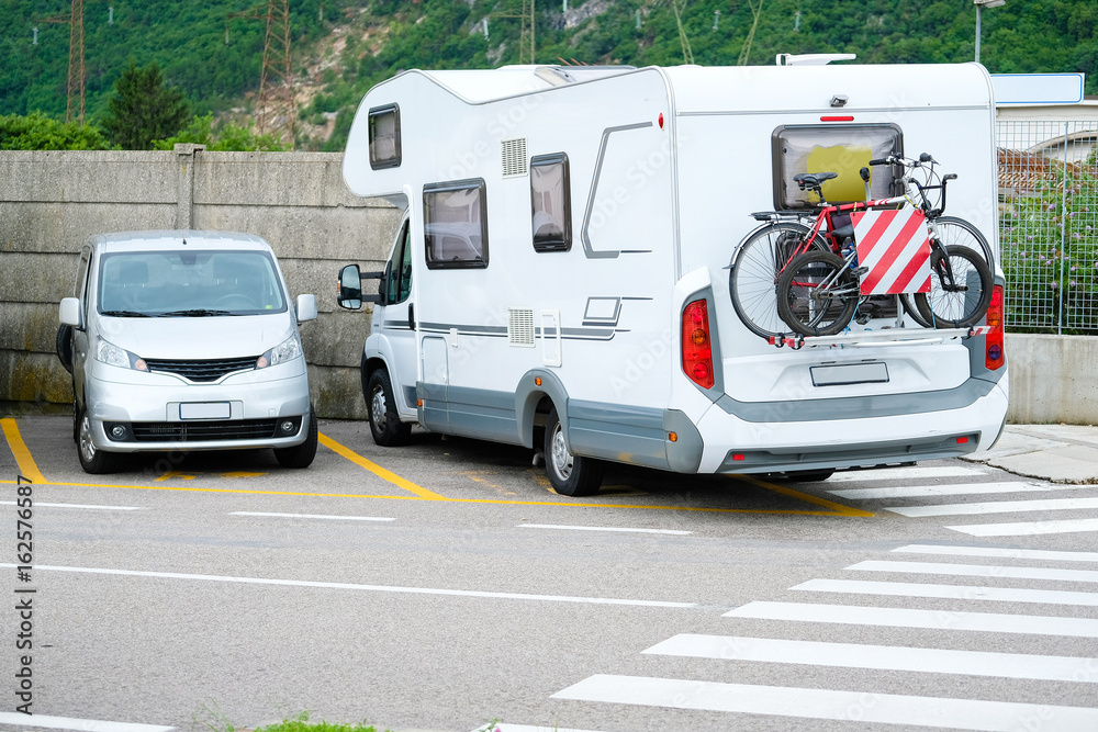 Santa Massenza, Trento region, Italy - June, 27, 2017: camper parking in a Santa Massenza, Italy
