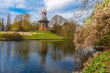 Popular city park Wallanlagen with Am Wall Windmill and river in Bremen, Germany