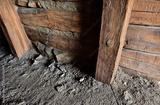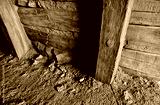The photo shows an old abandoned entrance to the mines