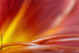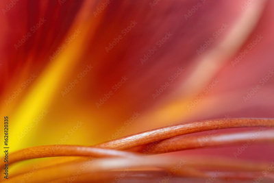 Abstract floral detail of a Hemerocallis Crimson Pirate flower in crimson red. Horizontal.
