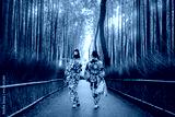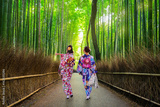 Women in kimono at bamboo forest of Arashiyama near Kyoto, Japan