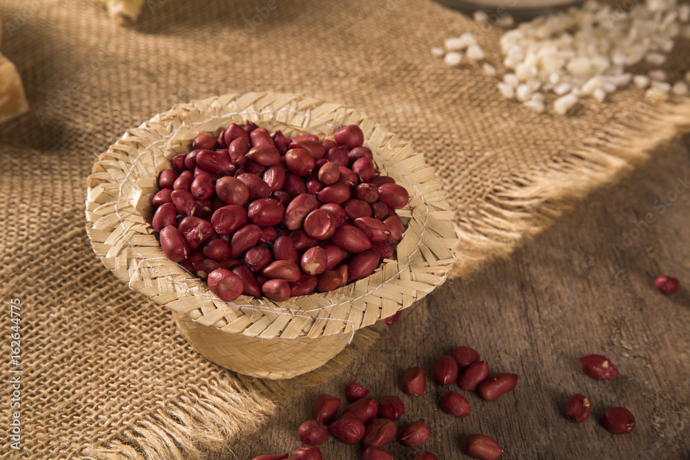 Table with Raw peanuts. Festa Junina Theme