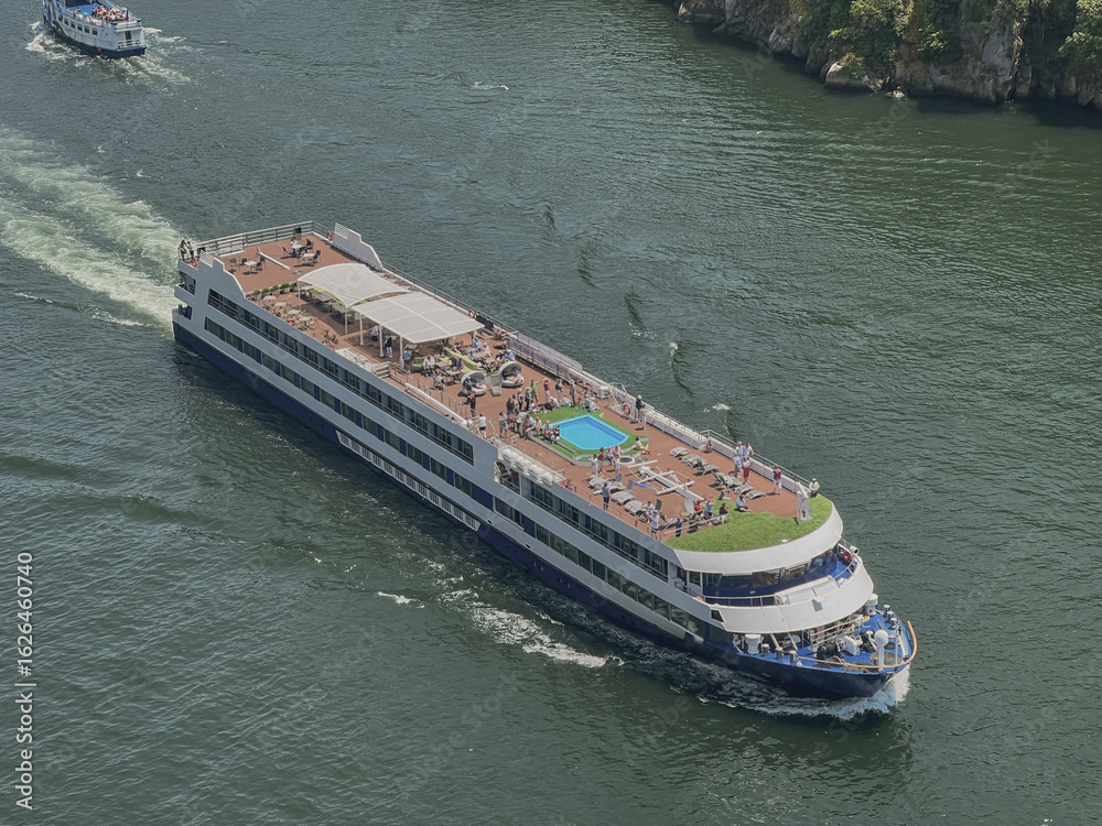 Luxury river cruiseship cruise ship liners for Douro summer Portugal cruising to vineyards and Portuguese nature landscape scenery wine tasting