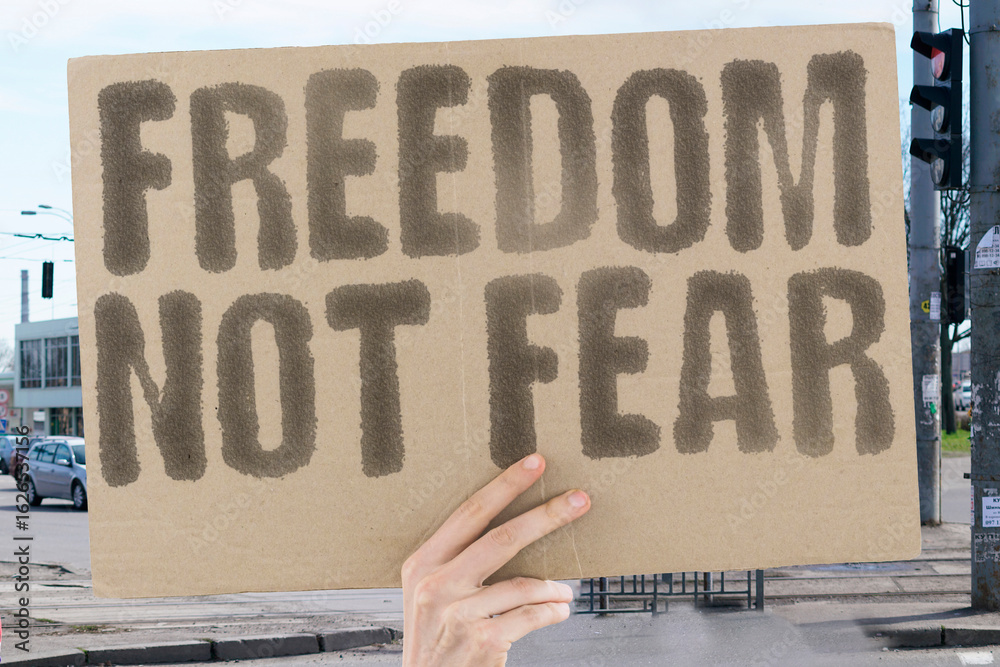 “Freedom Not Fear” — Protesters rally against state crackdowns, defending liberties in the face of expanding control.