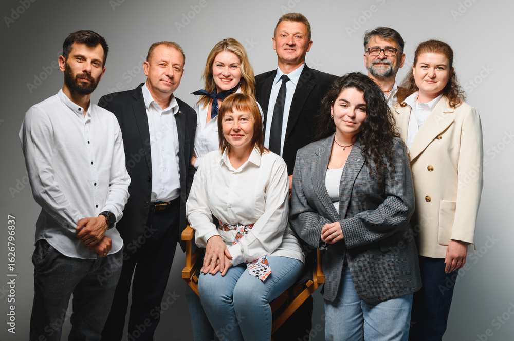 Business team posing for a group photo in studio