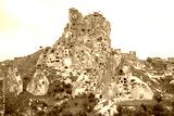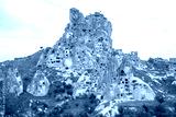 Unique rock formations in Cappadocia with cave dwellings in Turkey