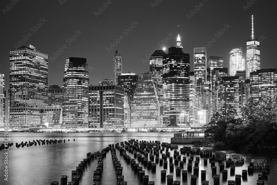 Manhattan skyline seen from Brooklyn at night, New York City, USA.