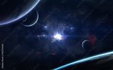 Science fiction space wallpaper, incredibly beautiful planets, galaxies, dark and cold beauty of endless universe. Elements of this image furnished by NASA