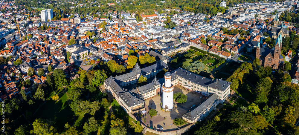 Aerial panorama view of the city Bad Homburg in Germany. on a sunny noon in spring.