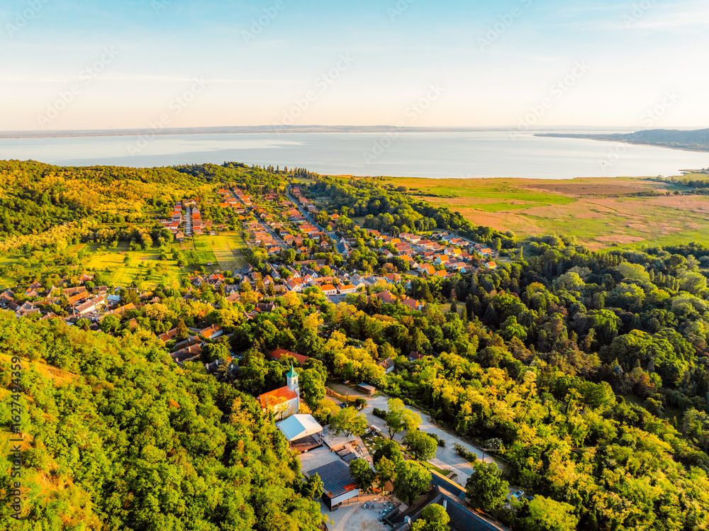 Sunset over the castle Szigliget, Hungary near Balaton lake