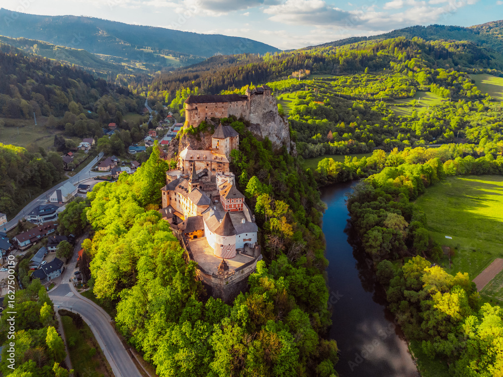Orava castle or oravsky hrad in Oravsky Podzamok in Slovakia. Medieval castleon high cliff by the Orava river.
