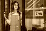 Friendly barista welcomes customers as local cafe opens its doors to the community