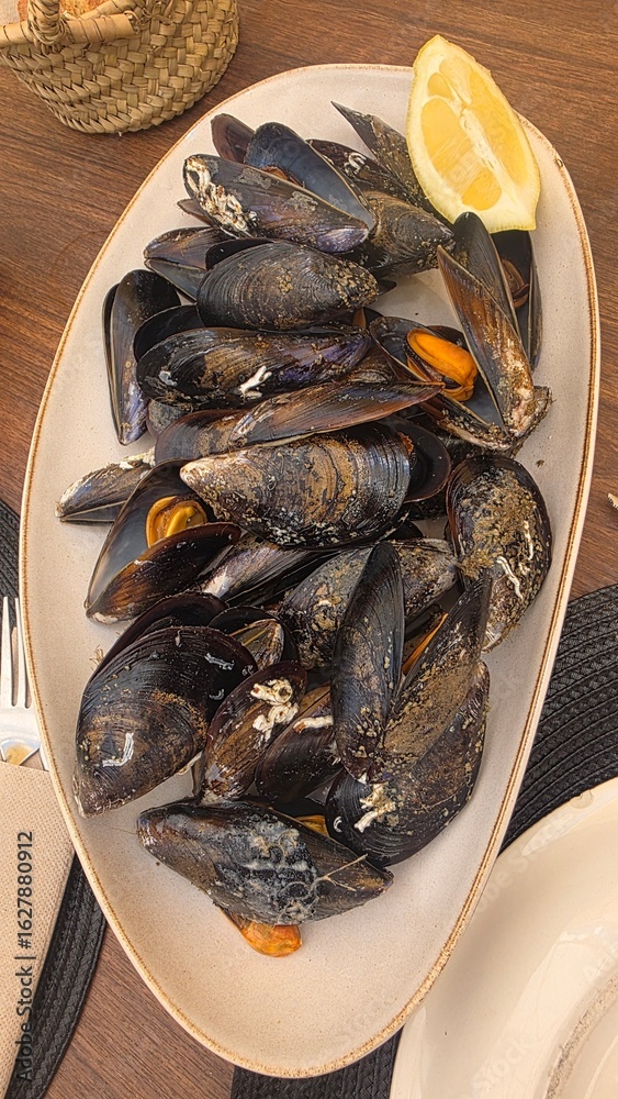 steamed mussels with lemon, galician seafood