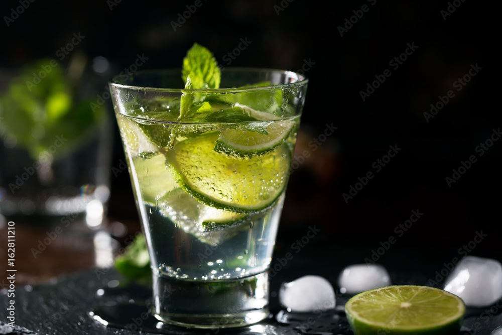 Mojito cocktail with lime and mint